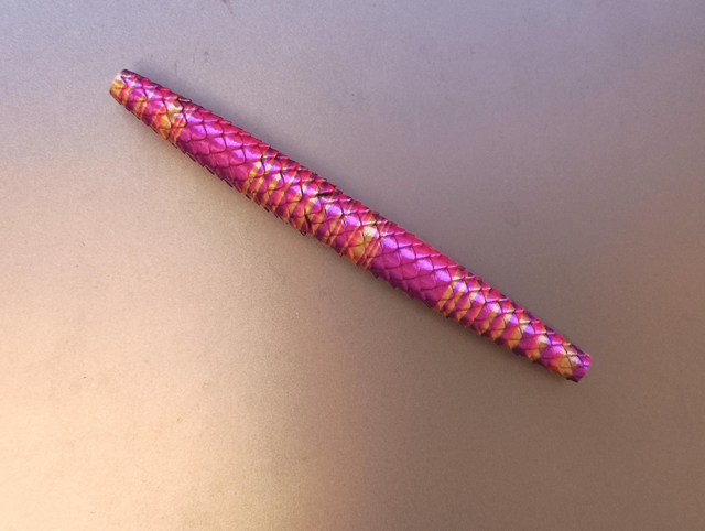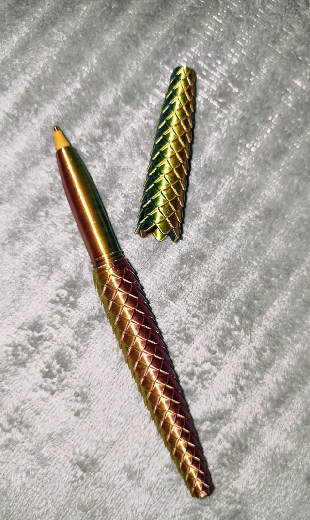 A pen that looks like it's made from shiny dragon scales, it makes a fantastic gift for dragon fans, pen lovers or just as a nice gesture