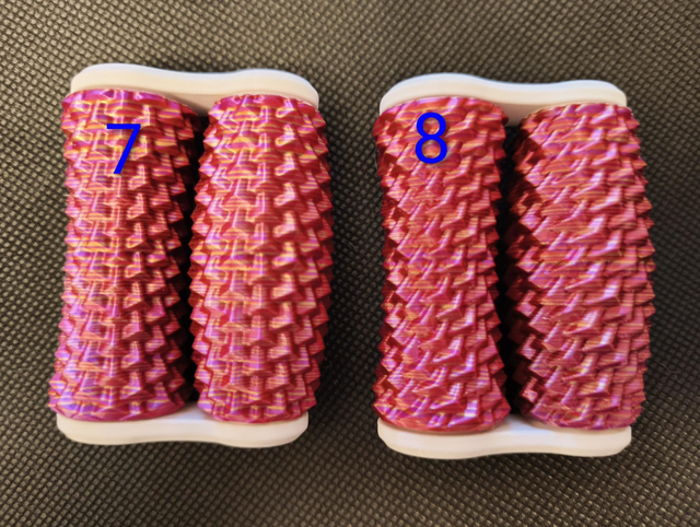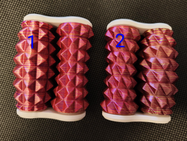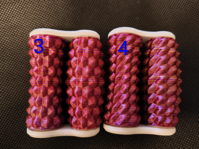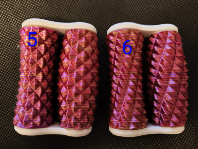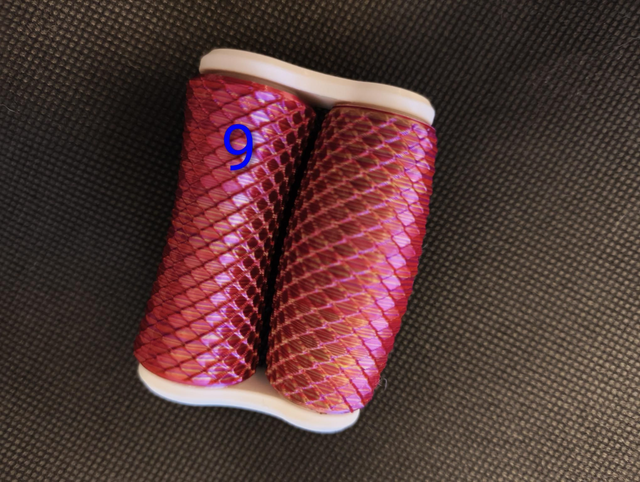 Hand roller fidgets, available in 9 different patterns. These ones are the Larger size we make which are great for older teens or adults. Printed in a Pink/Gold stripe filament.
