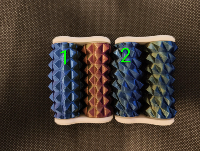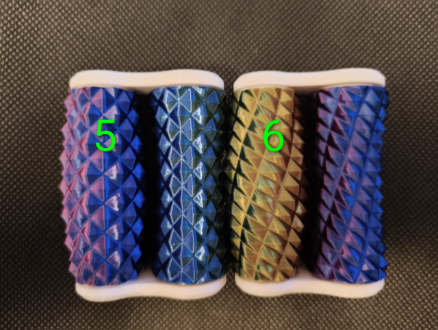 Hand roller fidgets, available in 9 different patterns. These ones are the larger size we make which are great older teens or adults. Printed in a Red/Blue/Gold silk filament.